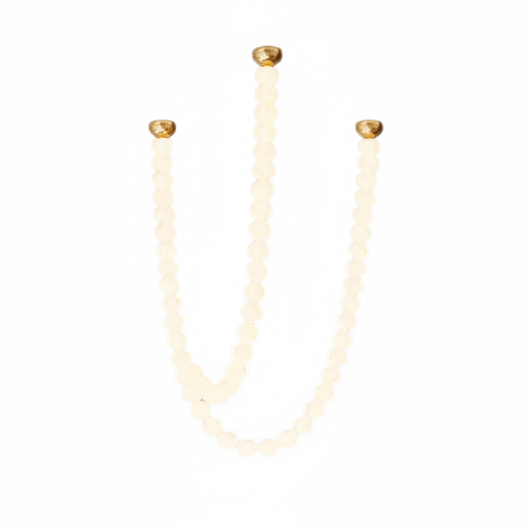 Люстра BEADS by Romatti — оригинальное осветительное решение, напоминающее нитку жемчуга. Конструкция состоит из ряда сферических элементов, равномерно расположенных на двух подвесных линиях. Светящиеся шары создают мягкий, рассеянный свет, формируя в интерьере атмосферу уюта и элегантности. Лаконичный, но выразительный дизайн делает люстру центральным элементом композиции.
