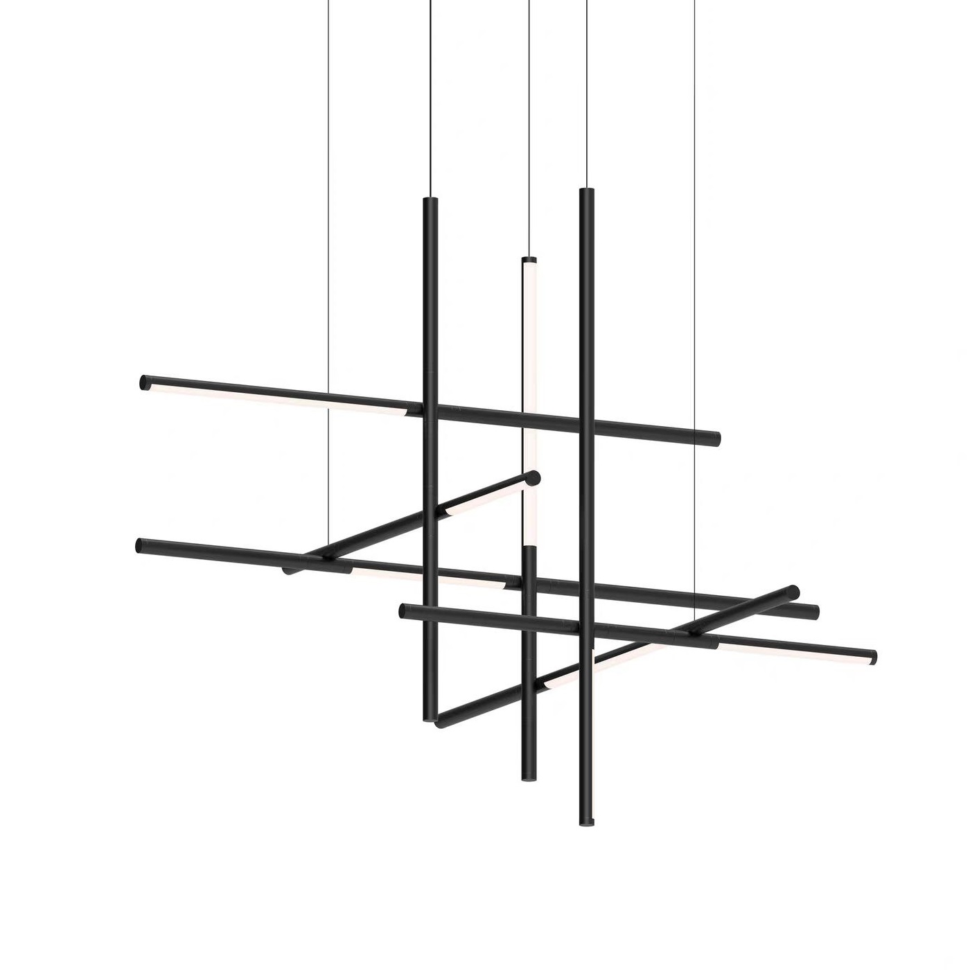 Люстра CADENZA by Romatti — воплощение современного минимализма с выразительной геометрией. Конструкция состоит из пересекающихся прямых линий и цилиндрических элементов, подвешенных на тонких тросах. Лаконичные формы и строгая чёрная цветовая гамма создают эффектный акцент, не перегружая интерьер. Дизайн сочетает в себе эстетику и функциональность: чёткие линии подчёркивают утончённость изделия, а продуманное расположение элементов обеспечивает равномерное распределение света.