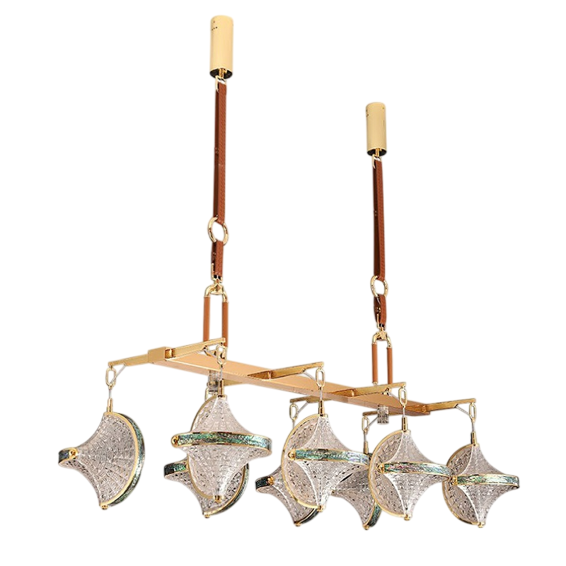 Люстра CONCH by Romatti представляет собой сложную многоуровневую композицию, где каждый элемент напоминает драгоценный артефакт, поднятый с морского дна. Дизайн сочетает в себе индустриальный шик и органическую роскошь.