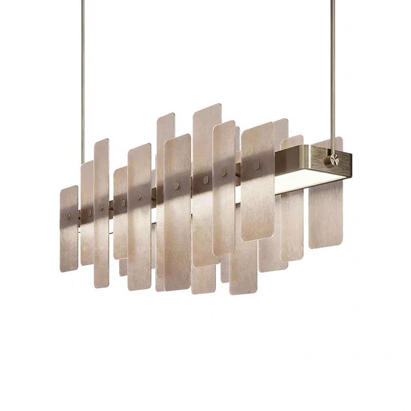 Люстра ECLARAE by Romatti — это воплощение современного дизайна, сочетающего элегантность и лаконичность. Её конструкция представляет собой ряд вертикально расположенных полупрозрачных пластин, которые изящно обрамляют источник света. Благодаря такой композиции свет мягко рассеивается, создавая в помещении уютную и одновременно стильную атмосферу. Металлические элементы добавляют изделию строгости и подчёркивают его минималистичный характер.