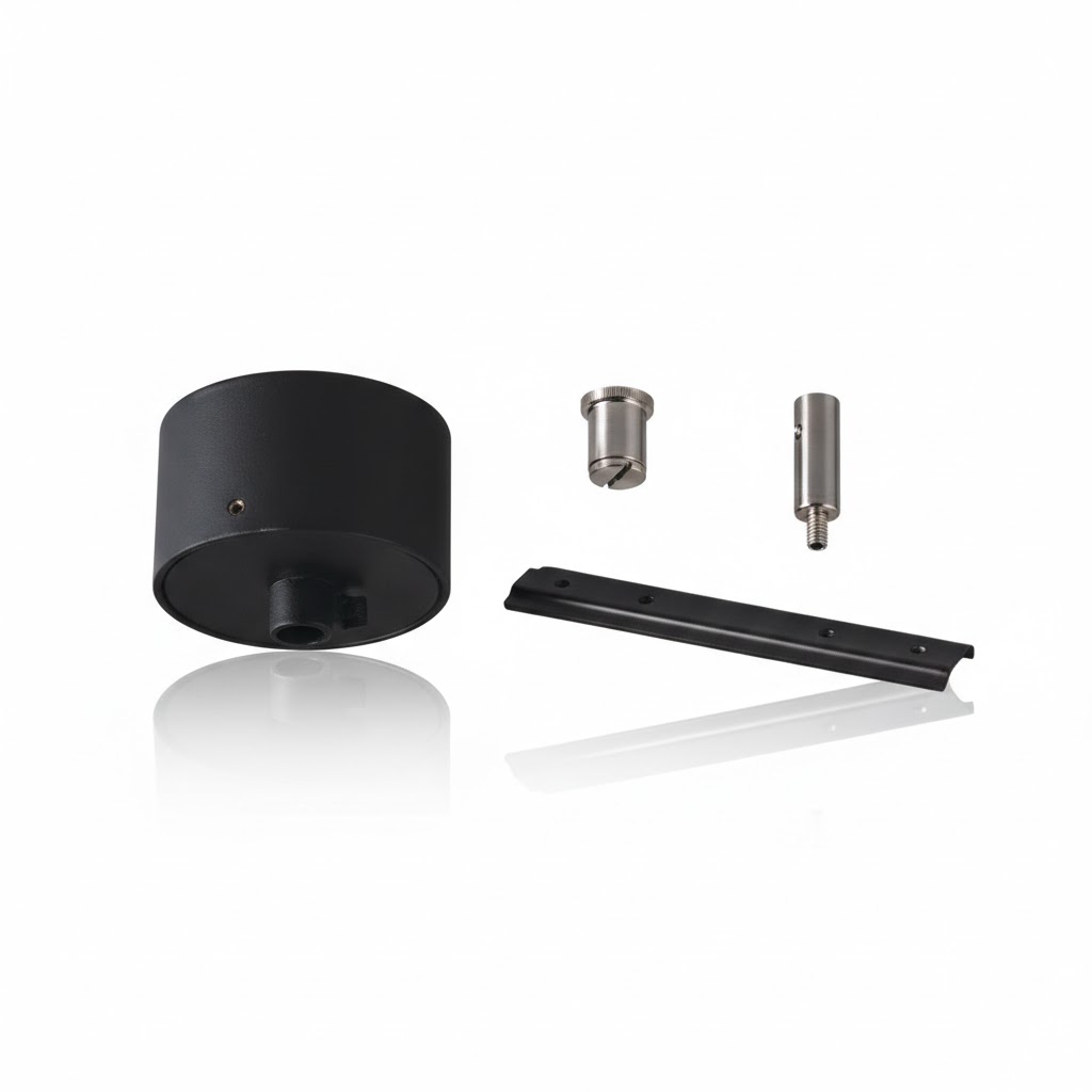 Монтажный кронштейн PRATO by Romatti — практичное решение для установки трековых светильников и других осветительных систем. Компактный и прочный, он состоит из основного цилиндрического корпуса, крепёжных элементов и монтажной планки, что обеспечивает надёжную фиксацию конструкции на потолке или стене.