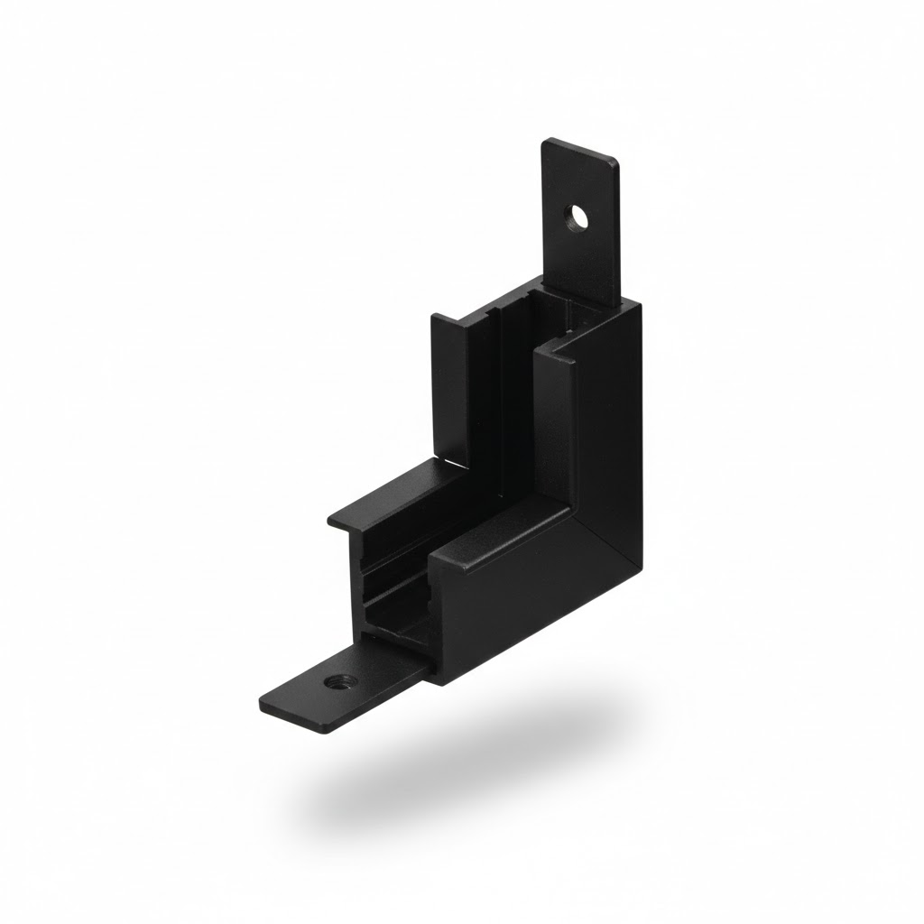 Соединительный модуль FABIO-Q by Romatti — функциональный элемент для организации трекового освещения. Выполнен в лаконичном минималистичном дизайне, имеет угловую конструкцию и предназначен для стыковки участков шинопровода под прямым углом. Изготовлен из прочного металла в чёрном цвете, отличается надёжностью и устойчивостью к механическим воздействиям.