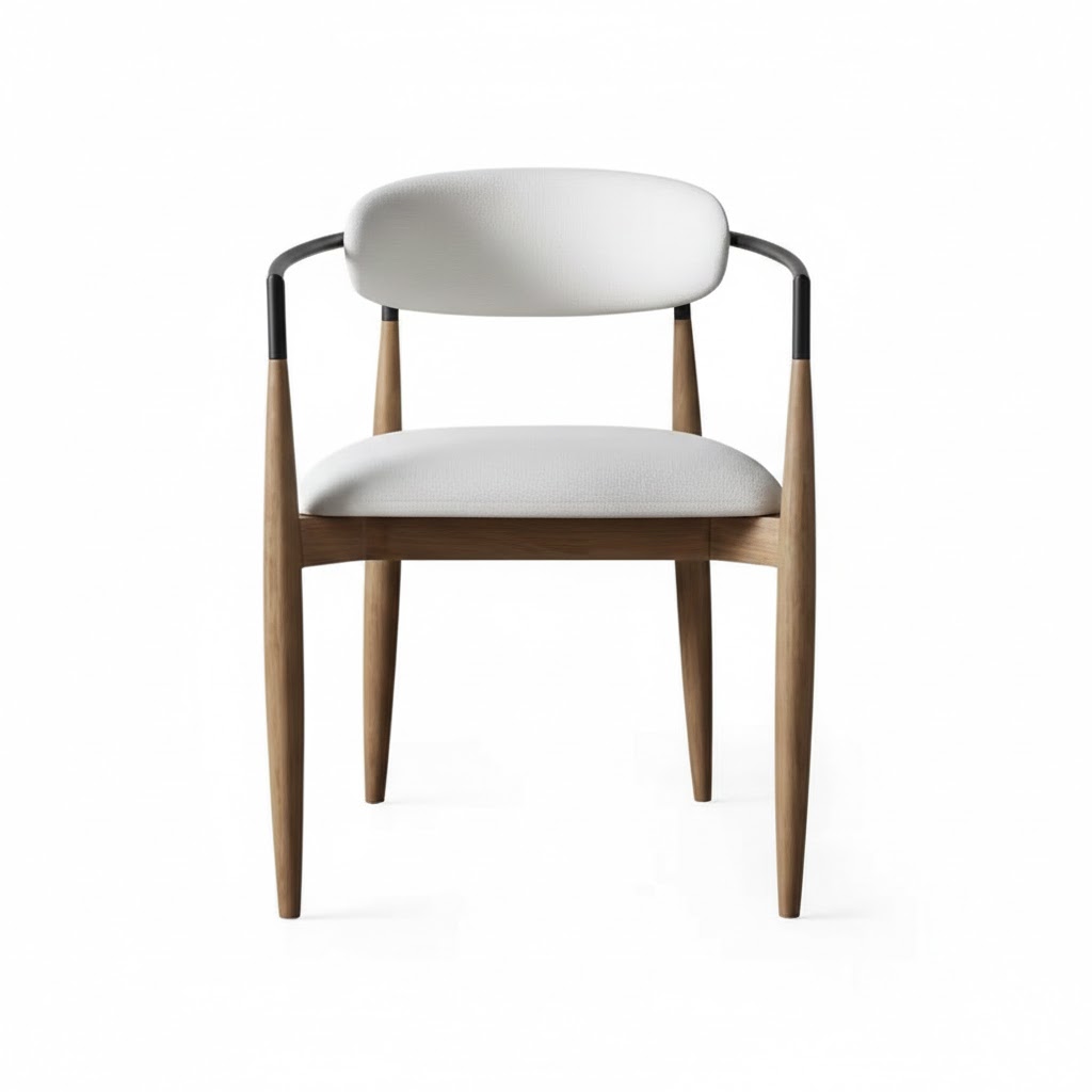 Дизайн модели продуман до мелочей: изящные деревянные ножки, плавные линии спинки и подлокотников, выполненные с акцентами из металла, придают стулу особый шарм. Светлая обивка не только выглядит свежо и стильно, но и обеспечивает максимальный комфорт при длительном использовании. Эргономичная форма спинки поддерживает осанку, а мягкие сиденье и спинка делают каждую минуту, проведённую в этом стуле, наслаждением.