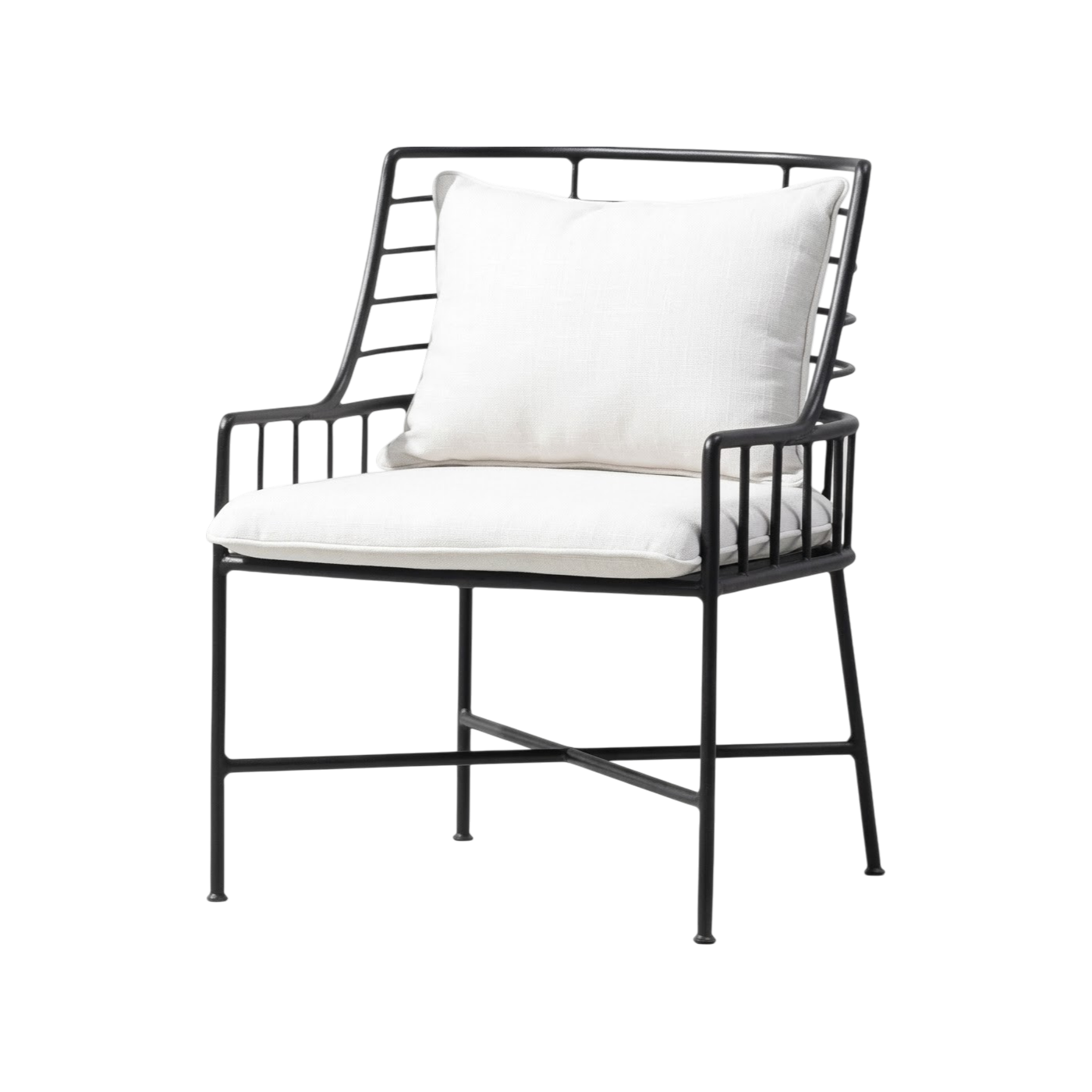 Мягкое сиденье и спинка дополнены объёмными подушками светлого оттенка, которые создают приятный контраст с тёмным каркасом и обеспечивают высокий уровень комфорта. Кресло отлично впишется в интерьер в стиле лофт, скандинавский или минимализм, станет стильным акцентом в outdoor-пространстве и подойдёт для расслабленного отдыха на свежем воздухе. Практичность и эстетика в одной модели — идеальный выбор для тех, кто ценит современный дизайн и удобство.