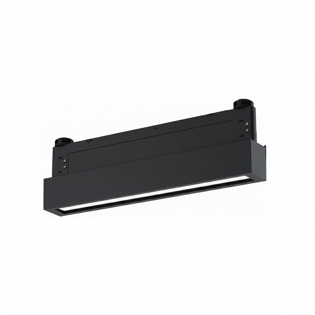 Конструкция светильника выполнена в виде прямоугольного корпуса с несколькими круглыми отверстиями для установки трековых источников света. Такая компоновка обеспечивает равномерное распределение света и даёт возможность гибко настраивать световые сценарии — от акцентного освещения до общего равномерного света.